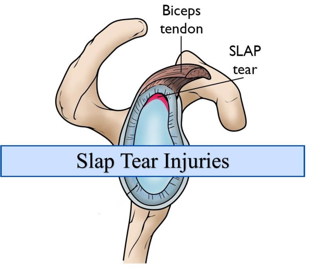A SLAP tear (Superior Labrum Anterior to Posterior) is an injury to the shoulder's labrum, specifically at the top where the biceps tendon attaches. It can cause pain, weakness, and instability in the shoulder joint.